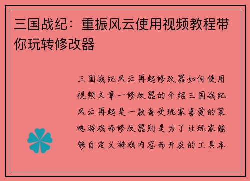 在试玩过程中,可以记录下自己的心得和体会。可以写下每个武将的优势和劣势,以及自己的策略和战术。这样可以帮助自己更好地理解和记忆每个武将的特点。